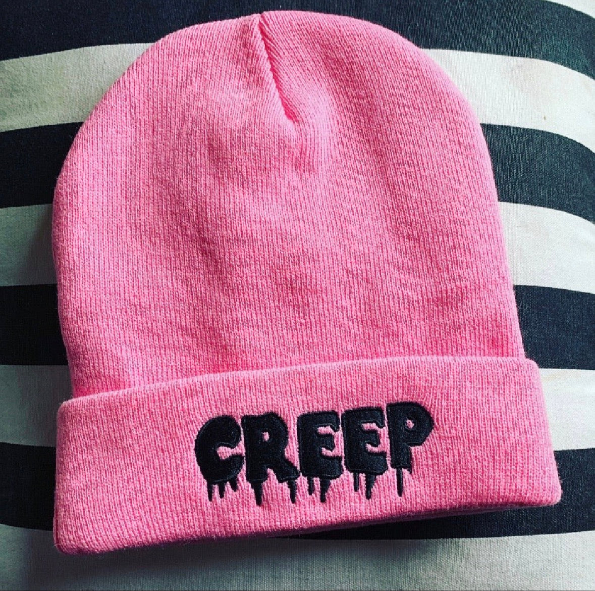 Pink version of the OG Creep Beanie. CREEP embroidered in black 🖤